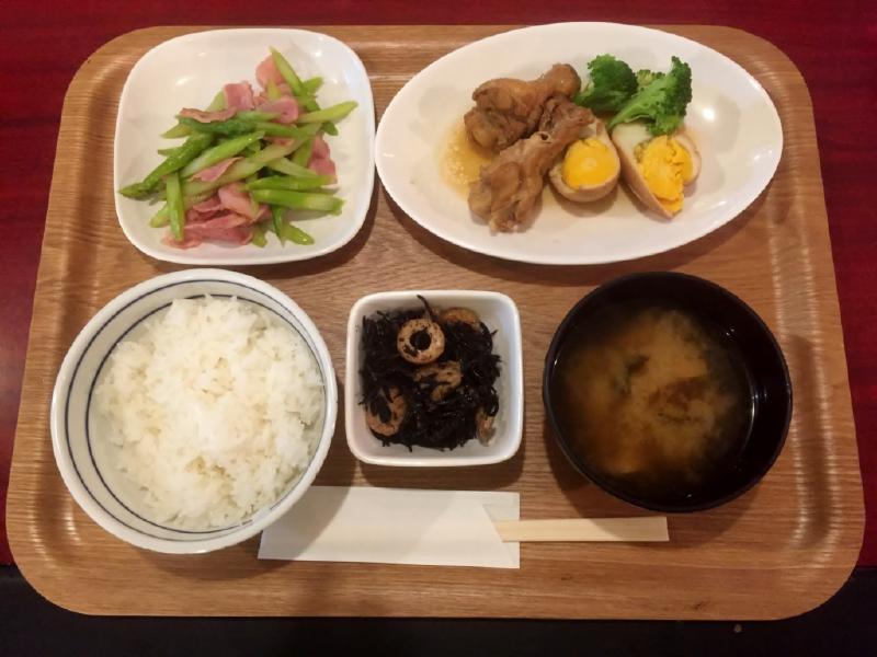 晩ご飯定食は、骨付き鶏のサッパリ煮です。