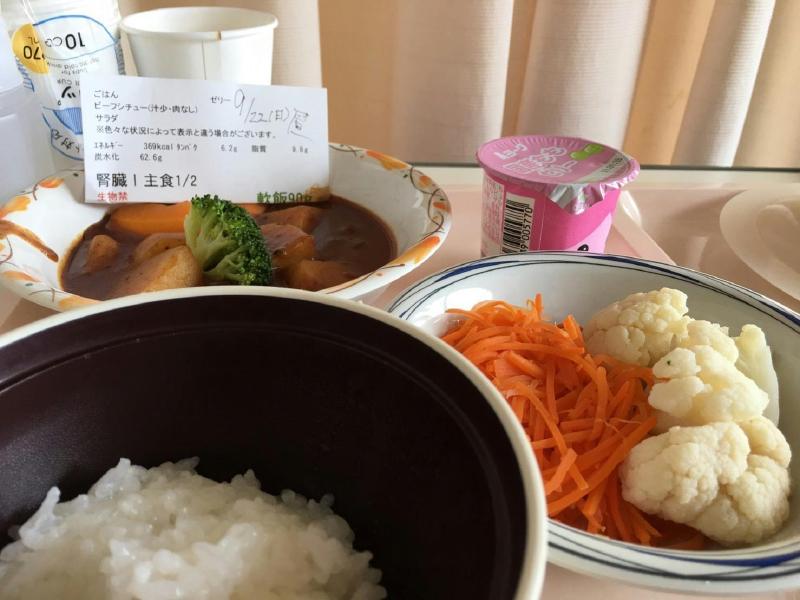 先週の食事と比較すると肉類が増えてきたように見える。お見舞いに行ったときに「食欲は無かったけど豚しゃぶは美味しかった」とアヤコーホーが言ってました。