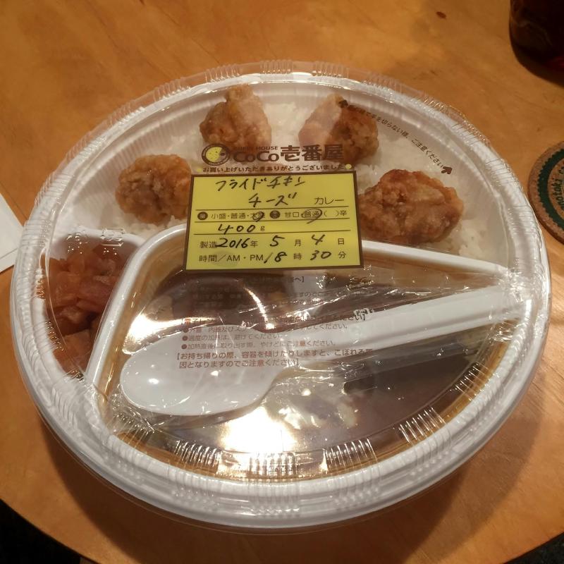 なんであのときcafeがオープンしてから1年間くらい毎月4日の営業日にはココイチのカレーを一緒に食べてました。これはアヤコーホーの亡き夫KGの月命日にはKGの好物のココイチカレーを食べるというトクマス家の習わしにお客さんも付き合わされていたからです。 カレーを食べる前には「めぐみ」を店内に流します。アヤコーホーは「めぐみ」を目をつぶって聴いていましたね。ひとしきりKGの事を思い出してカレーを食べたのでしょうか。 (※写真は私の定番オーダー・フライドチキンチーズカレーです、カフェで食べるためにテイクアウトして持ってきました。)