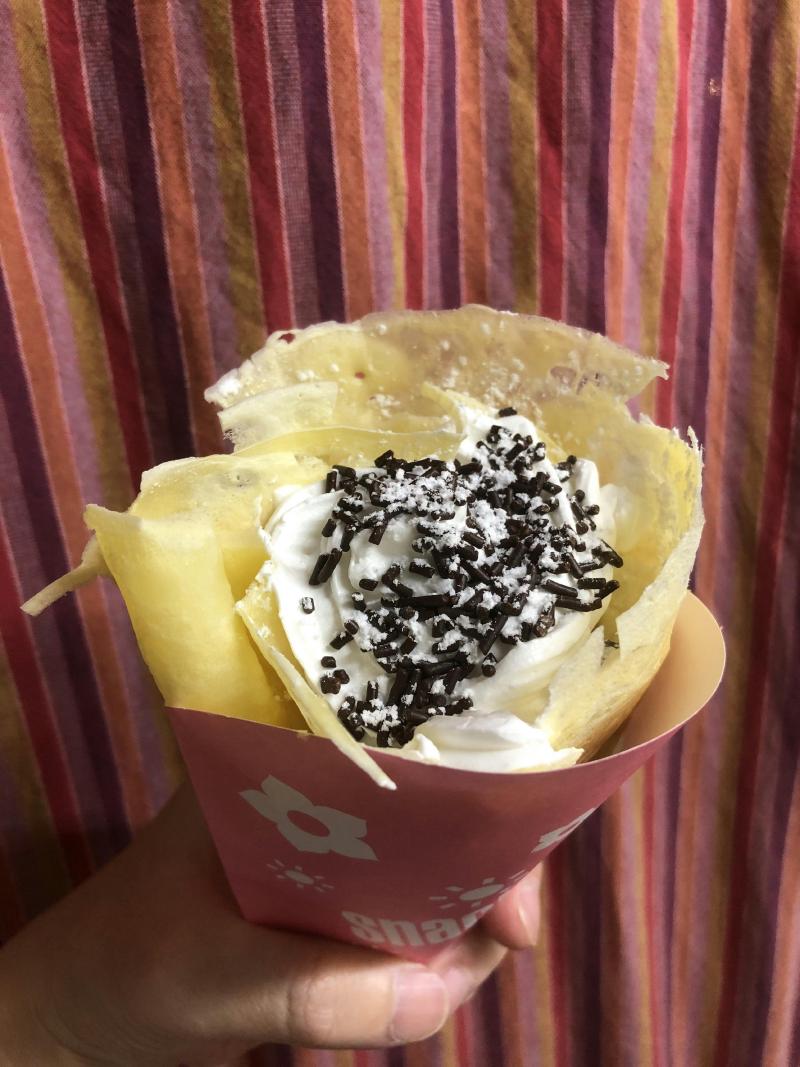 そしてこれが音楽ライブ中に私の手元に届けられたバナナチョコクレープです。シュガールーさんが言うにはクレープの素を大量に用意してしまったらしいので、今後もちょくちょくクレープ屋さんをやってくれそうです。