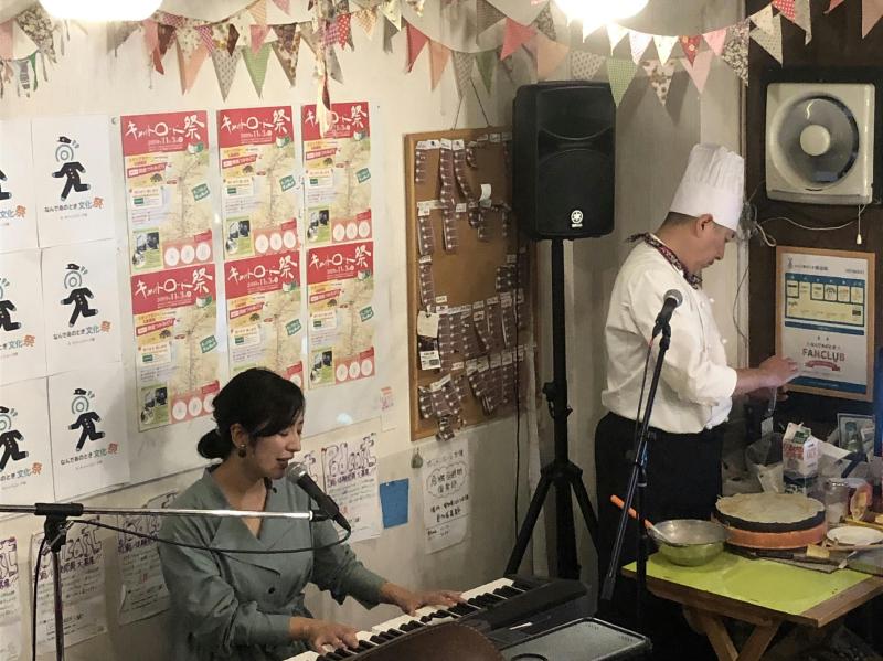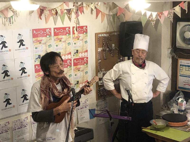 そしてライクアチワワさん・江口晶さん・そらしのさんの音楽ライブ。江口晶さんの演奏にはJOEさんがカホンで参加してました。それぞれのライブの他に、江口さんとライクアチワワさんのコラボや、そらしのさんとJOEさんのコラボがあったりと最後まで目が離せないパフォーマンスが続きました。来年もキャットロード祭に合わせ、なんであのとき文化祭をやりましょう。