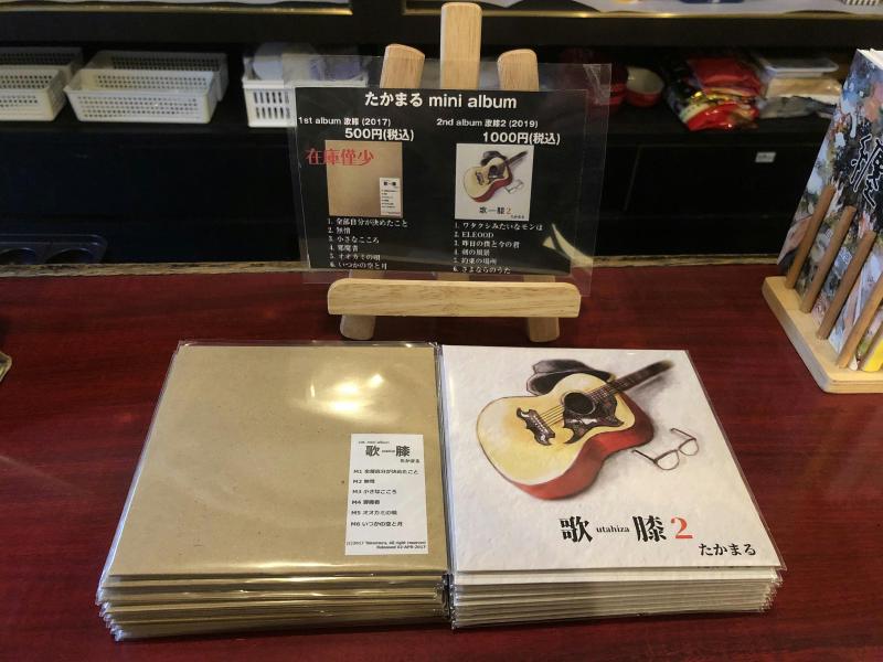 たかまるさんのミニアルバム「歌膝」及び「歌膝2」の在庫が少なくなってたけど入荷しました。たかまるさんのCDの他、カフェに置いてある音楽CDやなんあの関連グッズを購入希望の方は、なんであのとき放送部の活動中に部員にお申し付けください。
