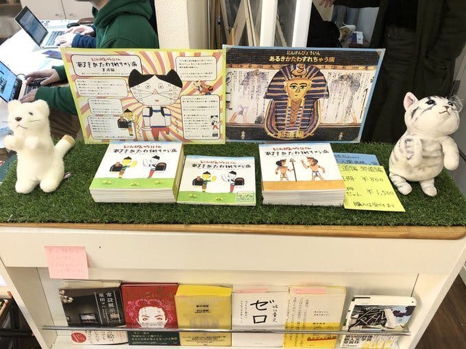 2日目はぬいぐるみが増えてかわいさアップしておりました。ぬいぐるみに寄ってきた人に絵本を買わせる作戦ですね。