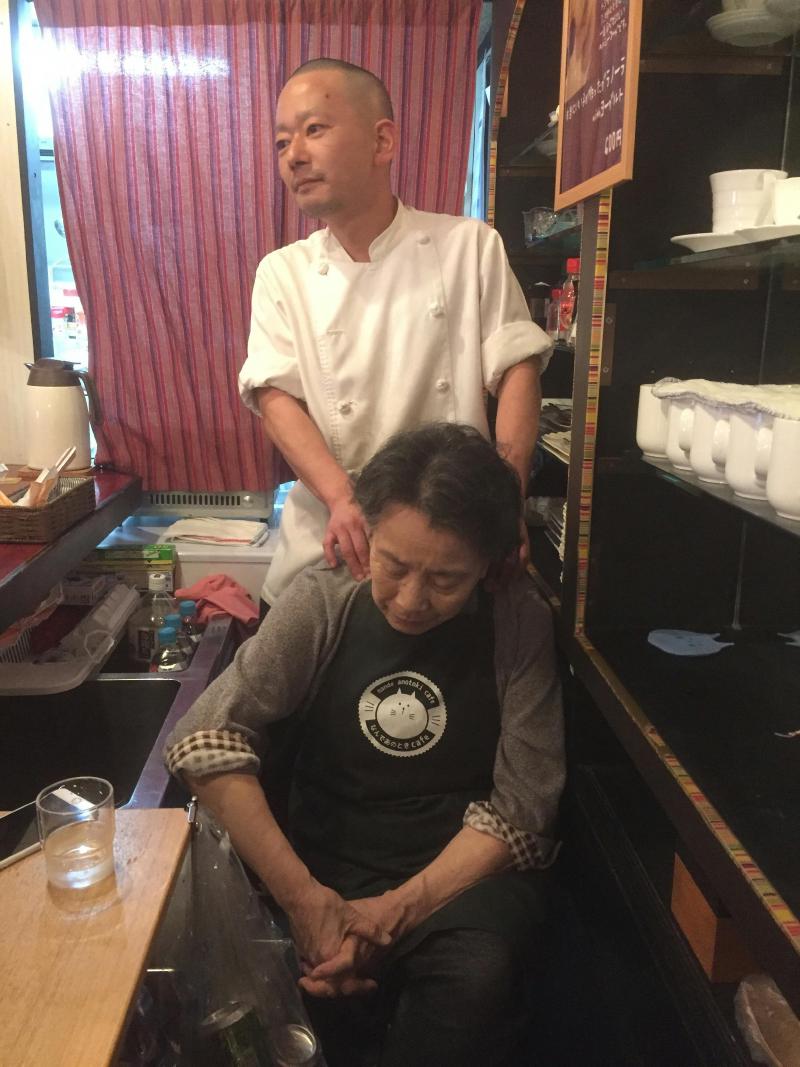 2017年3月頃、ジョンジシェフがアヤコーホーさんの肩をマッサージしてた。