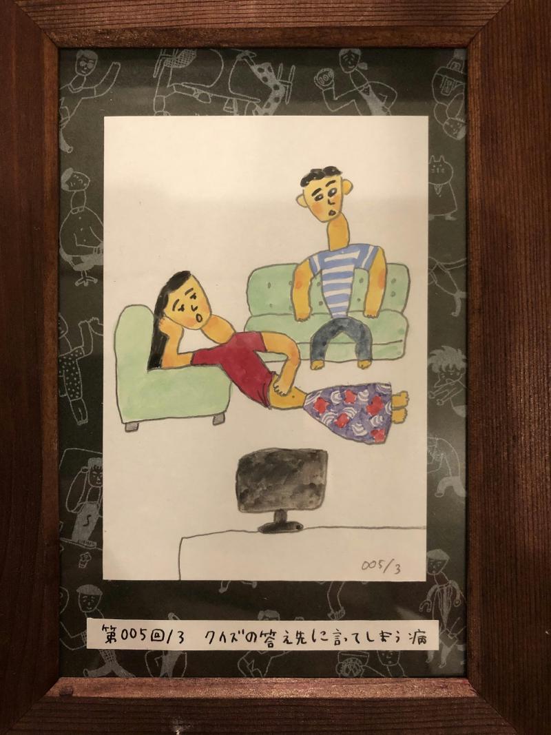 なんであのとき(cafe)に飾ってある人間病院びょうきイラストは時々落ちてしまいます。私が確認したうちで2020年に初めて落ちたイラストは「クイズの答え先に言ってしまう病」でした。