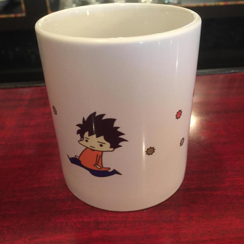 もう一人のキャラクター・ミツヒロくんも描かれています。このマグカップは非売品です。