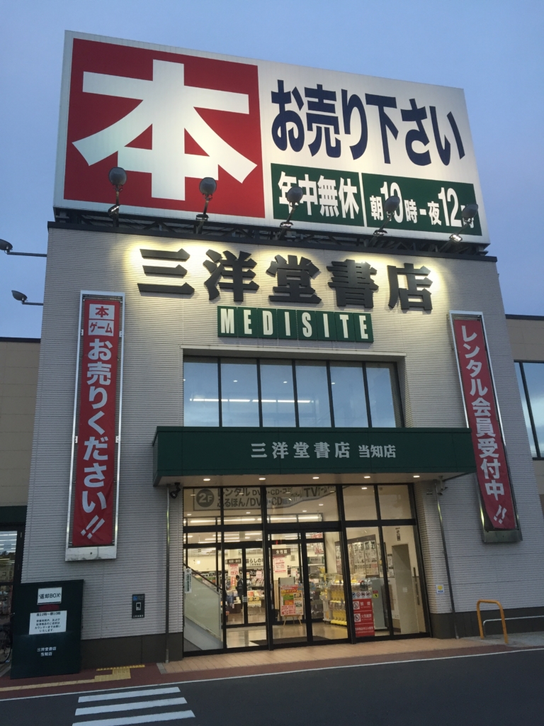 三洋堂書店(当知店)2016/01/24タツラウ2016年目次デストロイラジオで話題の場所に行く、その13、三洋堂書店(当知店)目次デストロイラジオで話題の場所に行く、その13、三洋堂書店(当知店)destroy-radio-spot - この記事は連載の一部ですパート 1: 本郷亭(本郷店)パート 2: ラの壱(千代田橋店)パート 3: 若鯱屋(アピタ千代田橋店)パート 4: パンダラーメンパート 5: ガンショップ天龍パート 6: 藤一番(名古屋インター店)パート 7: らくだ書店(本店)パート 8: ベントマン(金屋店)パート 9: 吉野家(上社店)パート 10: 吉野家(打越店)パート 11: 口論義運動公園パート 12: スーパージャンボパート 13: この記事パート 14: 新瑞橋駅パート 15: 妙音通駅パート 16: ヒッコリーパート 17: イオンメイトピア店パート 18: 今井総本家(天津甘栗専門店)パート 19: 西友(高針店)パート 20: とにお(高針西友店)パート 21: 新宿パート 22: 極楽パート 23: 名東プール(跡地)パート 24: 榮太郎(中日ビル南店)パート 25: ウォッチマン(跡地)パート 26: ハローエッグ(平和が丘店)パート 27: 星ヶ丘テラスパート 28: 矢場とん(矢場町本店)パート 29: かつ元パート 30: リトルワールドパート 31: 日本モンキーパークパート 32: お菓子の城パート 33: 東海ラジオパート 34: 平和公園パート 35: 永田や佛壇店(春日井店)パート 36: ヤナセ(名古屋支店)パート 37: 東急ハンズ(ANNEX店)パート 38: 喫茶マウンテンパート 39: 塩竈神社パート 40: 米常ライスパート 41: 茶屋坂自動車学校パート 42: どんどん庵(ピアゴ平針店)パート 43: 大高緑地パート 44: 香流橋プールパート 45: はなまるうどん(尾張一宮PA上り店)パート 46: えひめ飲料(本社)パート 47: スーパーマーケットバロー(城山店)パート 48: 矢作ダムパート 49: BOOKSTOREのビル(京命交差点)パート 50: PASTA屋ケンしろう(本山店)パート 51: ラーメン横綱(安城店)パート 52: KOBE 16bitデストロイラジオで話題の場所に行く、その13、三洋堂書店(当知店)#JOHNJさん: Facebookって、アレいくら?いくら?トクマスさん: 三洋堂に置いてる本じゃないですからデストロイラジオ 第163回 何度目かのTwitterをデストロイ。著者タツラウなんマガ編集者destroy-radio-spot - この記事は連載の一部ですパート 1: 本郷亭(本郷店)パート 2: ラの壱(千代田橋店)パート 3: 若鯱屋(アピタ千代田橋店)パート 4: パンダラーメンパート 5: ガンショップ天龍パート 6: 藤一番(名古屋インター店)パート 7: らくだ書店(本店)パート 8: ベントマン(金屋店)パート 9: 吉野家(上社店)パート 10: 吉野家(打越店)パート 11: 口論義運動公園パート 12: スーパージャンボパート 13: この記事パート 14: 新瑞橋駅パート 15: 妙音通駅パート 16: ヒッコリーパート 17: イオンメイトピア店パート 18: 今井総本家(天津甘栗専門店)パート 19: 西友(高針店)パート 20: とにお(高針西友店)パート 21: 新宿パート 22: 極楽パート 23: 名東プール(跡地)パート 24: 榮太郎(中日ビル南店)パート 25: ウォッチマン(跡地)パート 26: ハローエッグ(平和が丘店)パート 27: 星ヶ丘テラスパート 28: 矢場とん(矢場町本店)パート 29: かつ元パート 30: リトルワールドパート 31: 日本モンキーパークパート 32: お菓子の城パート 33: 東海ラジオパート 34: 平和公園パート 35: 永田や佛壇店(春日井店)パート 36: ヤナセ(名古屋支店)パート 37: 東急ハンズ(ANNEX店)パート 38: 喫茶マウンテンパート 39: 塩竈神社パート 40: 米常ライスパート 41: 茶屋坂自動車学校パート 42: どんどん庵(ピアゴ平針店)パート 43: 大高緑地パート 44: 香流橋プールパート 45: はなまるうどん(尾張一宮PA上り店)パート 46: えひめ飲料(本社)パート 47: スーパーマーケットバロー(城山店)パート 48: 矢作ダムパート 49: BOOKSTOREのビル(京命交差点)パート 50: PASTA屋ケンしろう(本山店)パート 51: ラーメン横綱(安城店)パート 52: KOBE 16bit