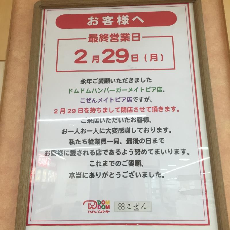赤坂にあるから赤坂サカス、名東区にあるからメイトピアです(Podcast内ではダイエーと言われてますが、今はイオン)。フードコートにある「ドムドムハンバーガー イオンメイトピア店」が2月29日で閉店。愛知県内のドムドムハンバーガー全滅です。