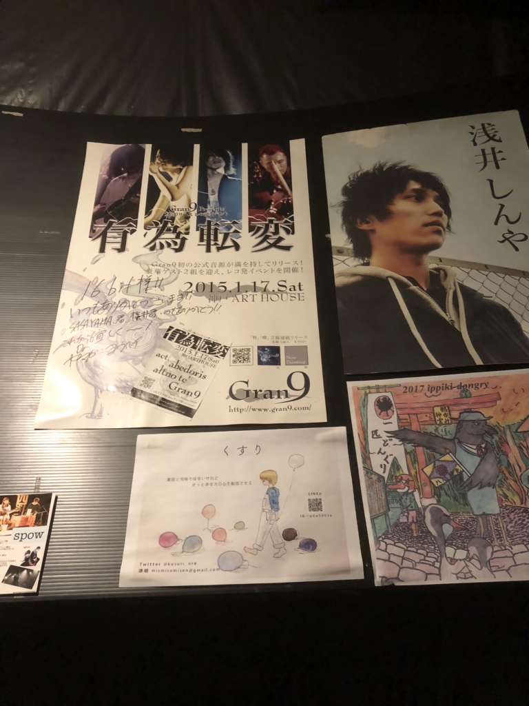 ライブハウスらしくイベントのフライヤーがたくさん貼ってあります。