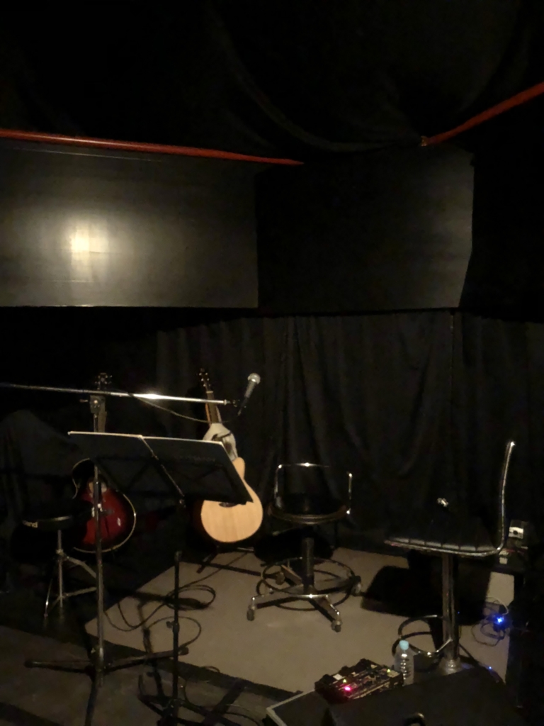 ステージと客席がとても近いです。この空間で聴くSASAYAMA.さんの歌は迫力が凄かったです。デストロイラジオのエンディング曲「ドラマティックブルー」や、ずばりこのよるcafeでいつも歌ってくださる「あのとき」も聴くことが出来ました。
