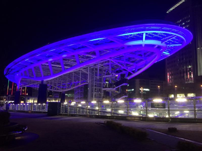 ギター師匠様は、おそらく昼間に訪問されたと思いますので、夜の名古屋テレビ塔と、すぐそばのオアシス21の様子をどうぞ。