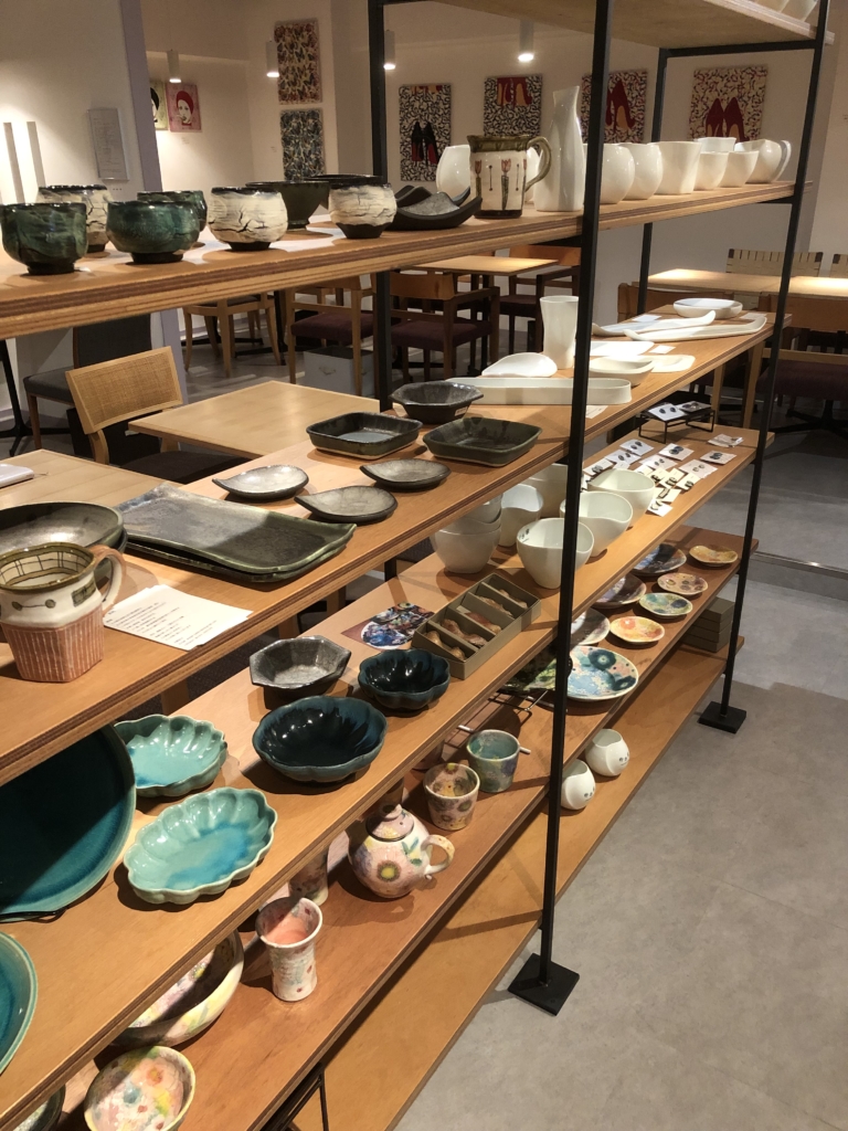 陶芸作家さんの作品が店内にたくさん置いてあります。
