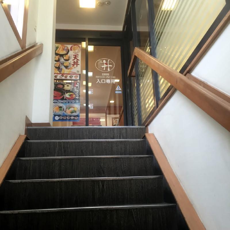 ライロジに疾風のように現れたバンド「ポークサイド」、その代表曲「ザドンde負けないで!」に因んで、ザ・どんに行きました。入り口はミスタードーナツと兼用、自動ドアを入って左に、ザ・どんへの階段があります。